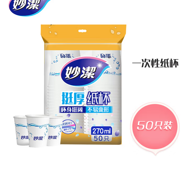 • 妙洁 7011 一次性杯子 加厚 防烫 大号 270ml